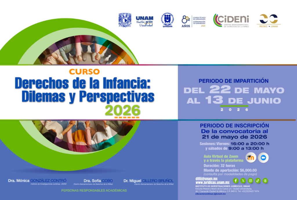La actividad es coorganizada por el Centro Iberoamericano de Derechos de la Niñez (CIDENI) y el Instituto de Investigaciones Jurídicas de la Universidad Nacional Autónoma de México (IIJ-UNAM), con el objetivo de ofrecer un espacio de reflexión y actualización sobre los principales desafíos que enfrentan los derechos humanos de niñas, niños y adolescentes (NNA) en la actualidad.